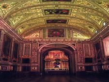 Está situado en la antigua Repostería del Monasterio, que es una estancia rectangular cubierta con artesonado de madera.