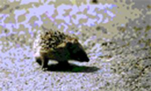 HABITAT: Prefiere los bosques, zonas de monte bajo, arbustos, setos, matorrales, bordes de los bosques, zonas de cultivo, lugares pedregosos, y en general en los lugares menos fríos y húmedos. Es un mamífero insectívoro que tiene todo el cuerpo, con excepción del vientre, recubierto de púas que miden sobre 1 mm. de grosor por 2 ó 2,5 de largo. Su aspecto es algo aplanado, macizo, rechoncho y pesado, llegando a alcanzar los 1.100 gr. de peso y a medir entre 22 y 29 cm de longitud total .No tiene cuello y en su cabeza, los ojos son salientes muy oscuros y pequeños, las orejas redondeadas y cortas. Sus patas son cortas y poseen 5 dedos cada una y están provistas de fuertes uñas. La cola también es corta. Los machos son mayores que las hembras, y tienen el vientre de un color que varía entre el pardo oscuro y el pardo amarillento, mientras que el de las hembras es color ceniza. |