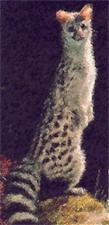 HABITAT: La gineta gusta de zonas boscosas de robles, encinas, pinares u olivares, con arroyos y roquedos. Se reparte por casi toda la Península, a excepción del sudeste y parte de Galicia, y por las islas Baleares. El aspecto de la gineta puede recordar al de un gato, aunque más estilizado. Su cabeza es alargada, con unas orejas grandes y redondeadas. El pelaje, gris amarillento, está moteado a franjas en el dorso, mientras que la cola, larga y peluda, presenta unos anillos oscuros. Mide unos 95 cm y pesa 2 kg. No existe apenas dimorfismo sexual. |