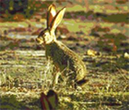 HABITAT: Estepas, sembrados y sotos de toda España, salvo las zonas del norte y costeras del sur, África y Europa. Su manto es de un color pardo amarillento con pequeñas manchas negras, el vientre, los costados y la parte inferior, son blancas, la cola es de color blanco con un penacho negro en el punta; sus orejas son largas y puntiagudas y la punta de éstas es de color negro. Sus patas traseras son mas largas que las delanteras con las que impulsa su cuerpo a unas velocidades extraordinarias. |