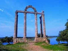 Ruinas de la que fuera población romana de Augustóbriga, Talavera la Vieja, hoy bajo las aguas del ya citado embalse.