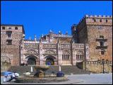 Hospital San Juan Bautista y Colegio Infantes o de La fachada del actual Parador de Turismo, al igual que la del edificio contiguo a este antiguo hospital, nos referimos al que fuera Colegio de Infantes o de Gramática, es amplia en sus proporciones, sobre todo si la comparamos con el resto del caserío guadalupense. El interior del Colegio de Infantes o de Gramática posee un bello e interesante claustro mudéjar que, lógicamente, sigue en su construcción las normas impuestas por el estilo que predomina en el Real Monasterio...